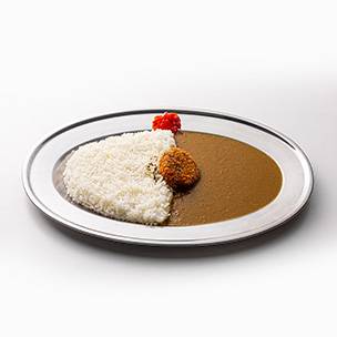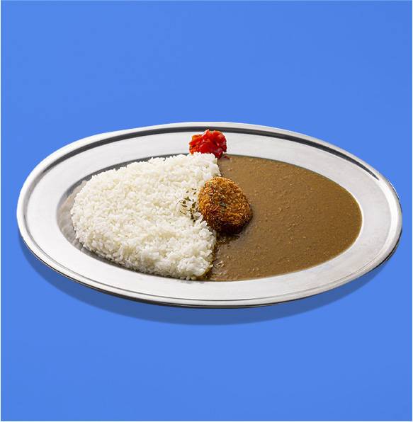マイルドにいかが?ビーフカリーに自家製の出汁ポテコロッケをトッピングしました。